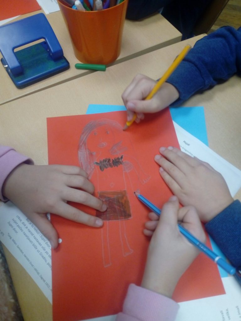 Nakon priče, koju je učenicima predstavio knjižničar, učenici su u skupinama morali ponovno sastaviti priču te nacrtati za svaki odlomak ilustraciju i to sve povezati u knjigu.
