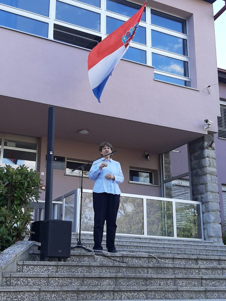 Okupljene učenike, roditelje i učitelje na školskom dvorištu pozdravio je ravnatelj Goran Ivan Matoš, a prigodni program vodila je Cvita Miljanić, učenica petog razreda.