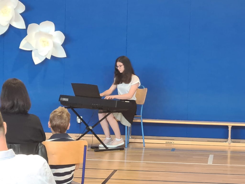 Okupljene je pozdravio ravnatelj Goran Ivan Matoš, a prigodni program vodila je Sara Grgurić. Nastupima na flauti i klavijaturama okupljene su počastile osmašice Bruna Likić te Lana Šurina koja je proglašena učenicom generacije. Kratku dramsku točku prema tekstu Jadranke Petrović izvela je učenica šestog razreda Jana Komočar.