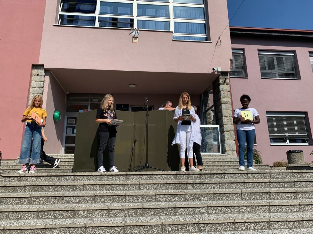Učenici matične škole pripremili su za prvašiće, njihove roditelje te djedove i bake kratak program. U programu su sudjelovali mali ritmičari pod vodstvom Vesne Marjanović koji su okupljene zagrijali svojim plesom, lutkari s predstavom Kukuruzna bajka uz vodstvo Andree Lastovčić te dramska skupina s recitacijom Abeceda uz vodstvo učiteljica Ane Matijašić te Zrinke Emić Kovač. Program je vodila učenica Cvita Miljanić, a za zanimljivu scenografiju zaslužna je učiteljica Likovne kulture Ana Kinčić Dubić.