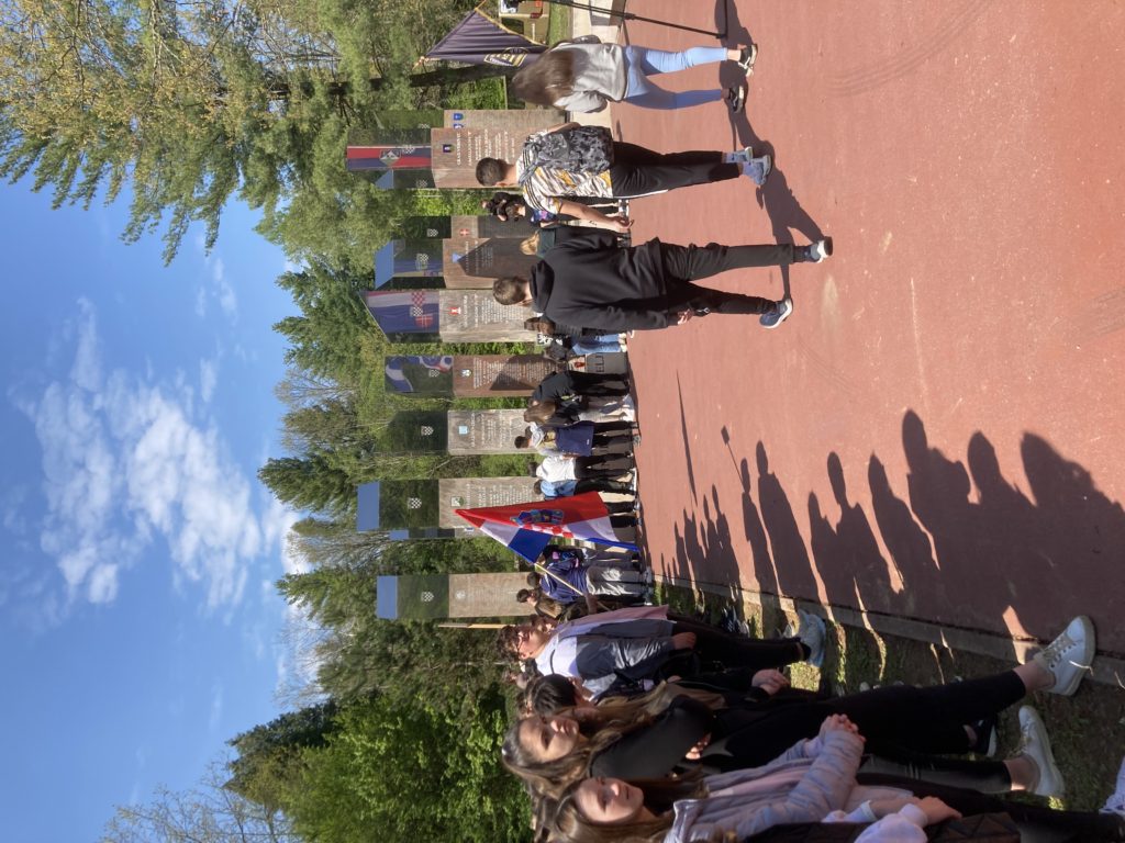 Učenici osmih razreda naše škole, zajedno s osmašima samoborskih osnovnih škola i srednjoškolaca iz ETUŠ-a, sudjelovali su 29. travnja 2022. na satu povijesti na Trokutu pokraj Novske, mjestu pogibije pripadnika 151. samoborske brigade.