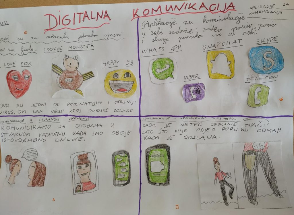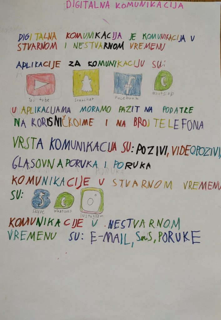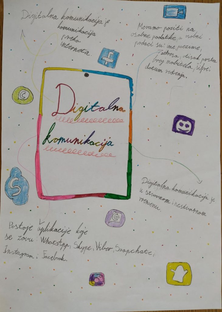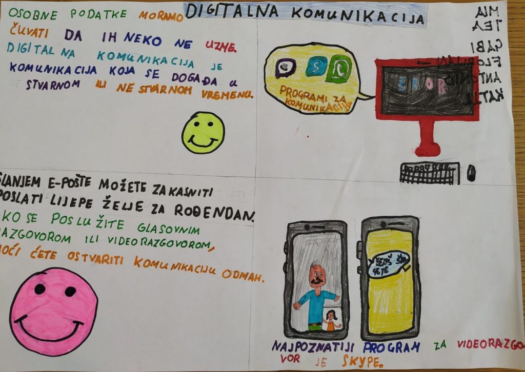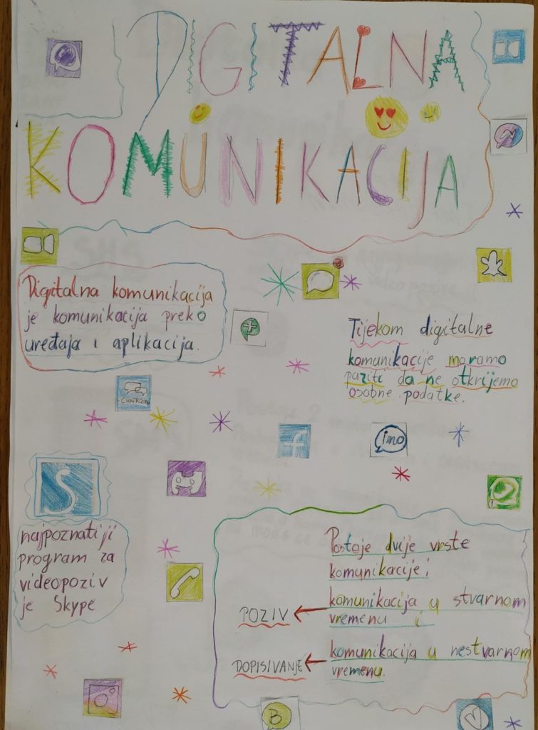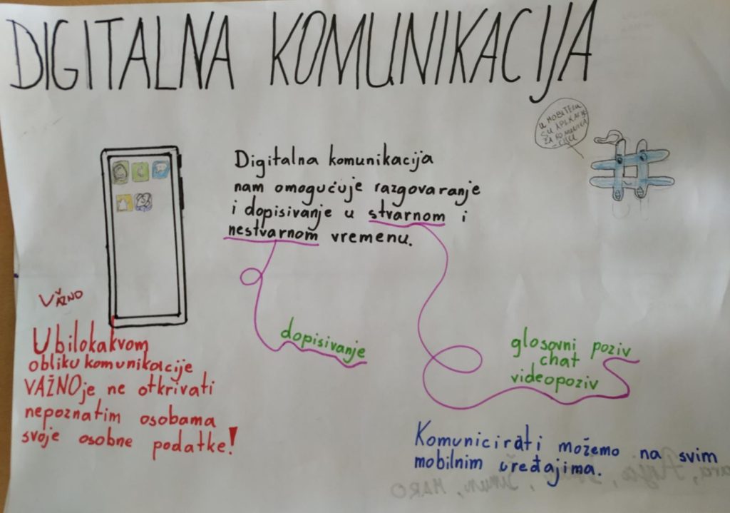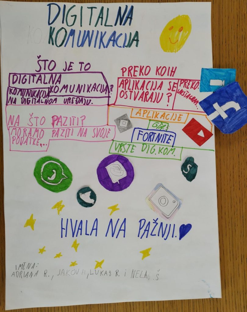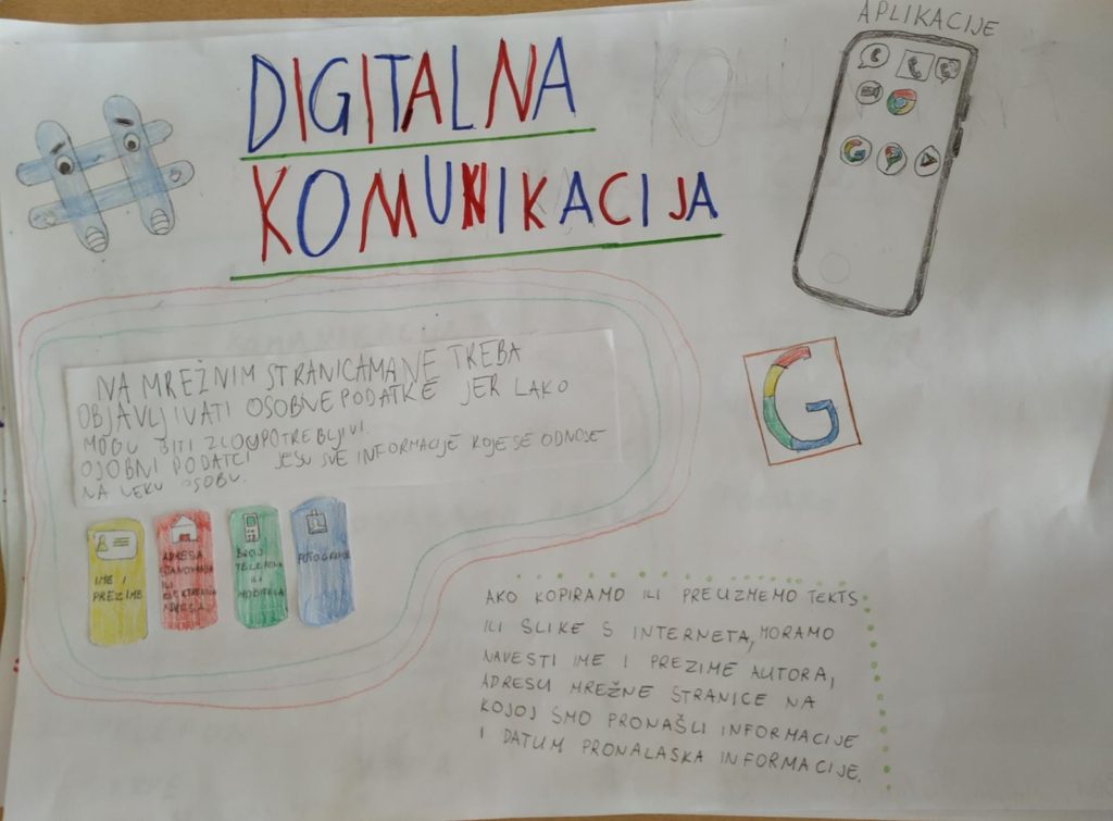 Učenici 3-razreda OŠ Samobor su u sklopu nastave informatike, zajedno s učiteljicom informatike Ivanom Cecilijom Skočibušić, odradili radionicu pod nazivom “Digitalna komunikacija” povodom koje su u grupama izrađivali plakate. Učenici su se upoznali sa vrstama digitalne komunikacije, glavnim značajkama te aplikacijama kojima se mogu koristiti prilikom navedenog načina komuniciranja. Učenici su se u sklopu radionice prisjetili i glavnog pravila kojeg se moramo pridržavati prilikom korištenja digitalnih uređaja – briga o osobnim podacima.
