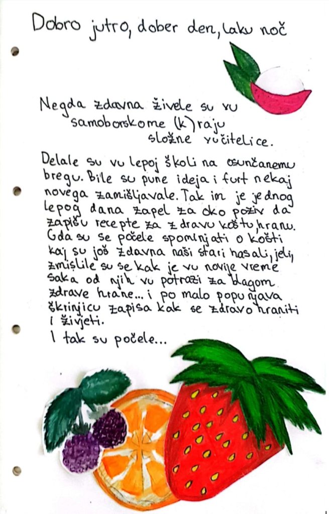Čestitamo svim učenicima od 4 do 8 razreda, nastavnicima uključenima u projekt izrade knjige “Sam(oborski) zdravo” čije korice su izrađene od recikliranog papira, a zdravi recepti samoborskog kraja rukom ispisani te ilustrirani.