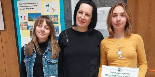U četvrtak 9.3. u Velikoj Gorici održano je županijsko natjecanje iz francuskog jezika. Naše učenice postigle su izvrsne rezultate, Jana Komočar osvojila je 2., a Mirta Jakobović 5 mjesto.