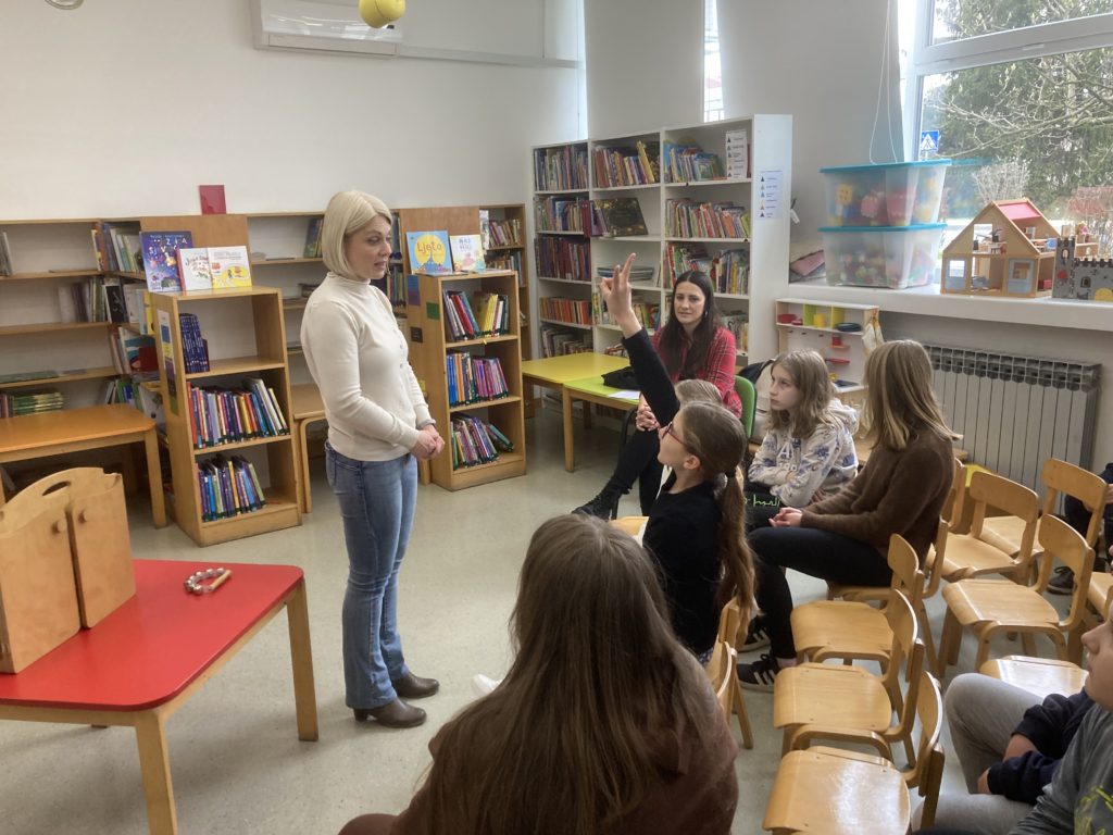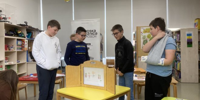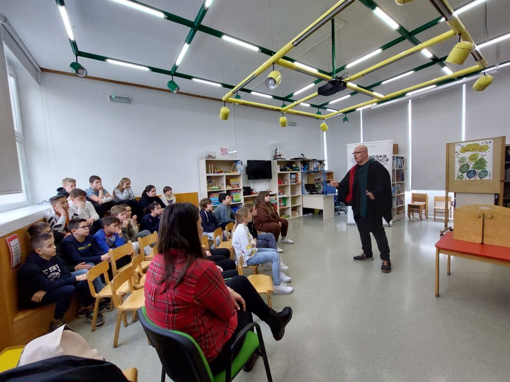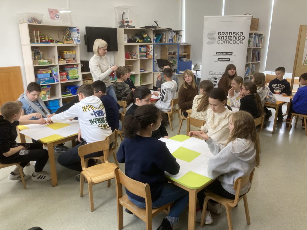 Gradska knjižnica Samobor – Odjel za djecu i mlade (hvala divnim knjižničarkama) ugostio je učenike 4.d s njihovom učiteljicom Jelenom Knežić Blažinom i knjižničarima Valentinom Biškup i Goranom Šobotom.