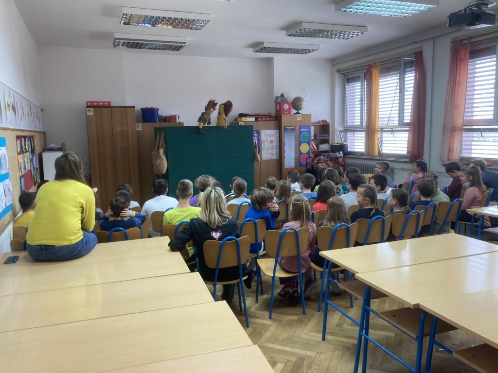 Naši prvašići, drugašići, učenici PŠ Smerovišće kao i učenici iz posebnih odjela uživali su sa svojim učiteljicama u igrokazima koje je naša gošća predstavila kao lutkarske kolaž predstave. U predstavama se koristila mnoštvom scenskih lutaka koje je sama izradila od različitih materijala i uporabnih predmeta.