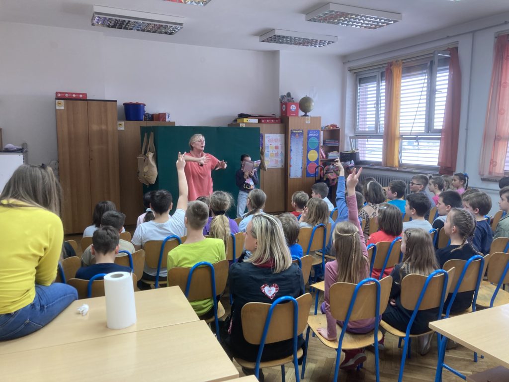 Za naše učenike organiziran je književno-scenski susret s Jadrankom Čunčić Bandov, poznatom književnicom i lutkaricom.