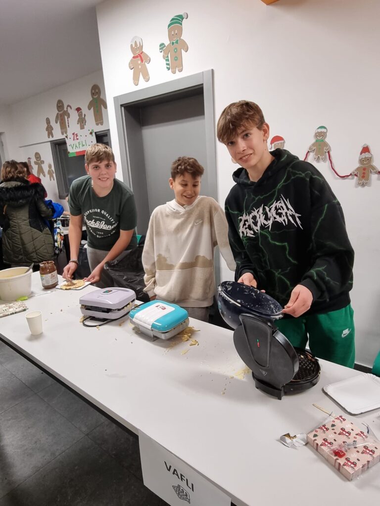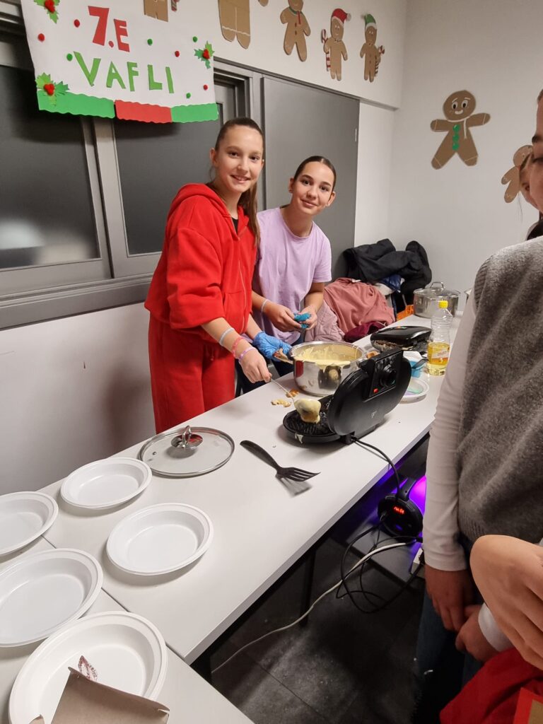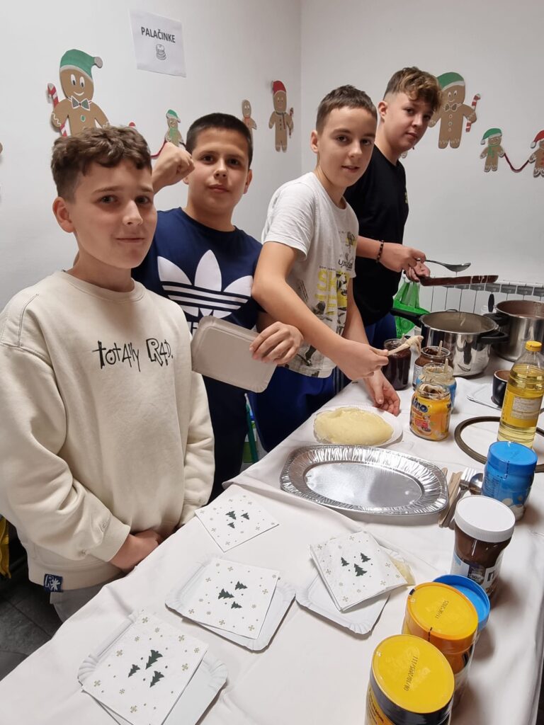 vaflima,palačinkama, dječjem punču, sokovima i keksićima.