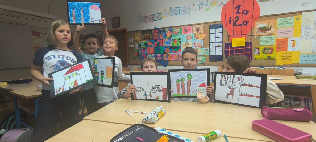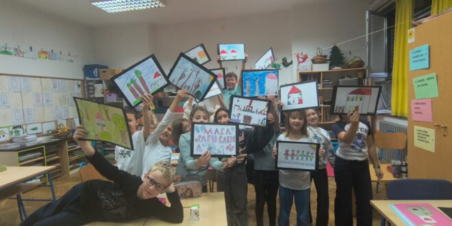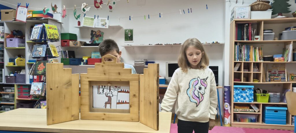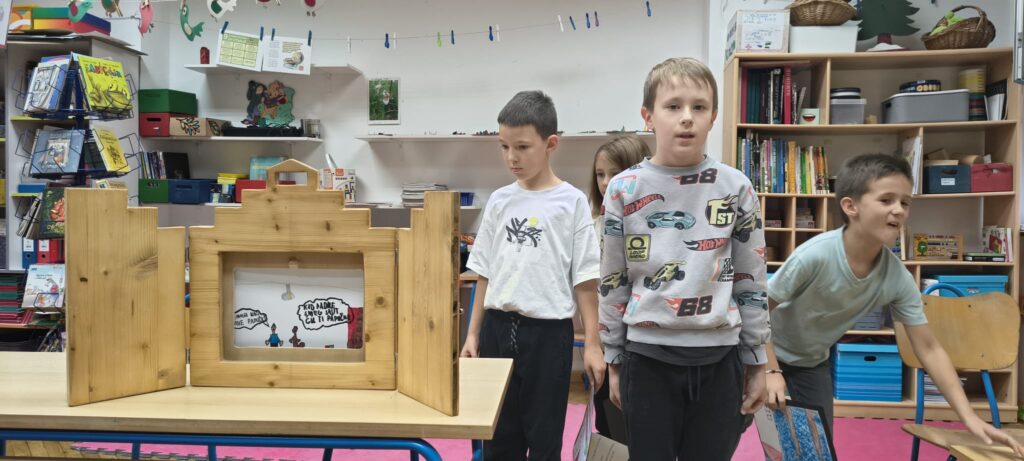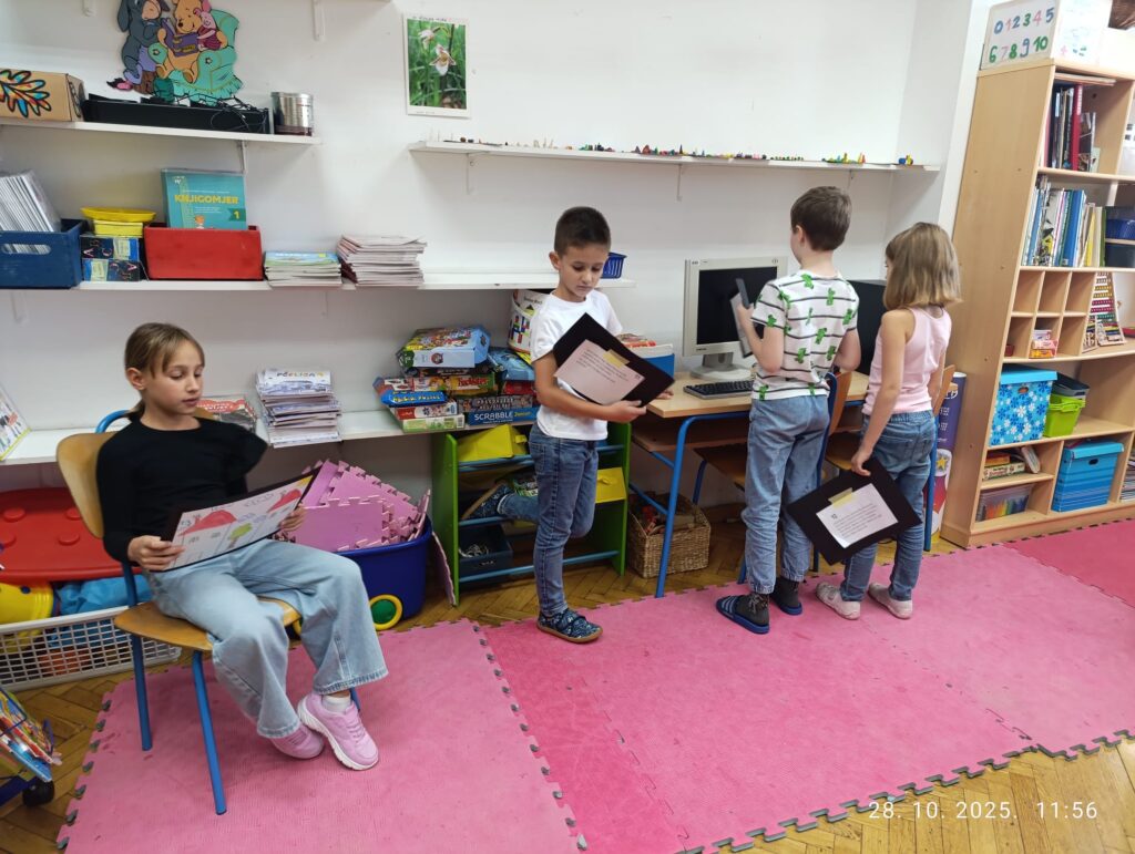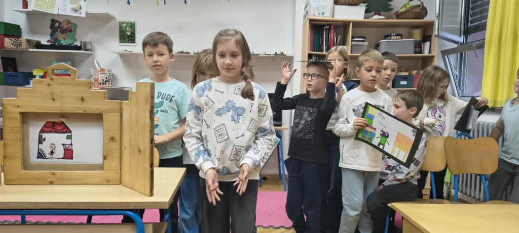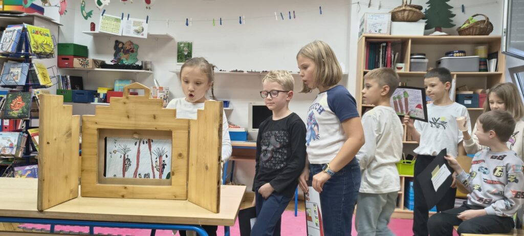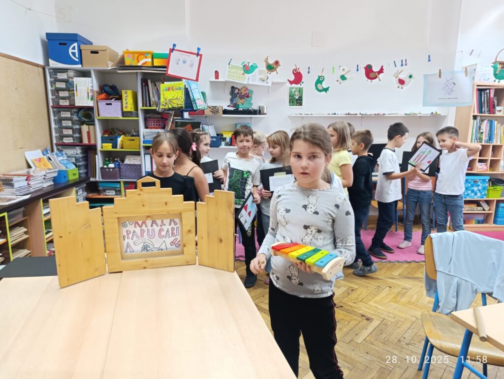 Povodom Mjeseca hrvatske knjige naš 2.a i njihova učiteljica Vesna Marjanović pozabavili su se Kamišibaj kazalištem i ispričali priču Ele Peroci, Maca papučarica. Sami su naslikali prizore iz priče te su uvježbali pričanje priče.
