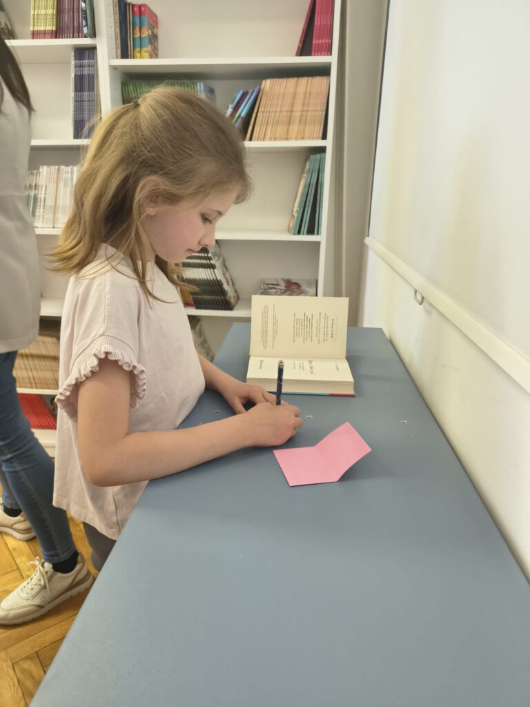 Povodom manifestacije Noć knjige koja se već 15. godinu zaredom obilježava diljem Hrvatske i u našoj knjižnici održana je radionica pod nazivom Upecaj se na knjigu. Učenici 2.a i 4.a razreda izrađivali su svoje omiljene lektire te pisali preporuke, veličinom dovoljne za ribički štap, u nadi da će se njihovi prijatelji upecati i krenuti na čitanje.